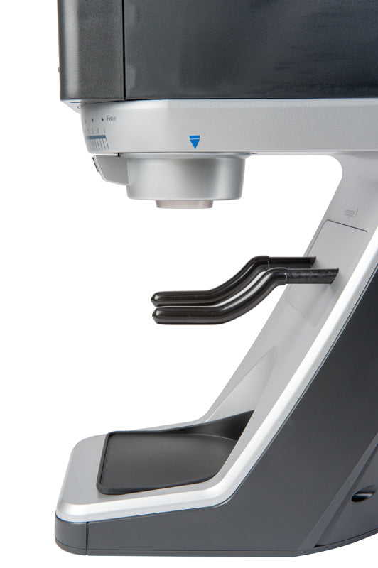 The Sette 30 has a device holder that allows you to remove and re-orient the arms to grind directly into a portafilter or into the supplied grounds bin.